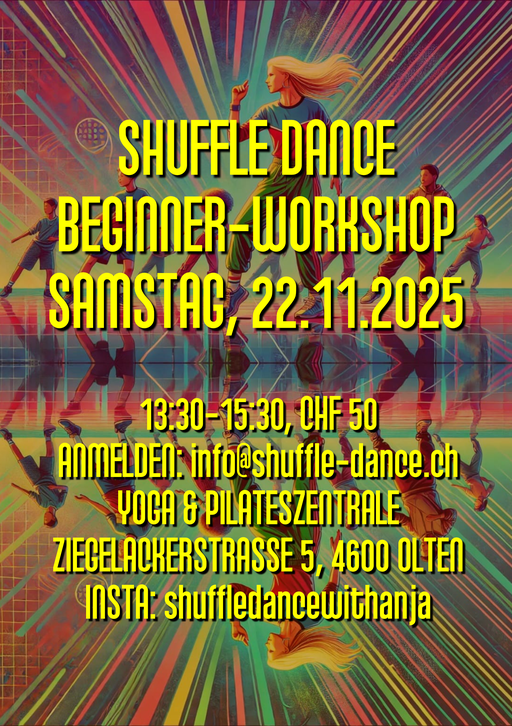 Beim Shufflen rutschen, gleiten und hüpfen die Füsse dynamisch über den Boden. Kombiniert mit rhythmischen Armbewegungen wirkt dieser Tanzstil extrem leichtfüssig und nahezu schwebend. Was leicht aussieht ist mit garantierten Schweisstropfen aber auch mit einem Gefühl grösster Zufriedenheit verbunden!